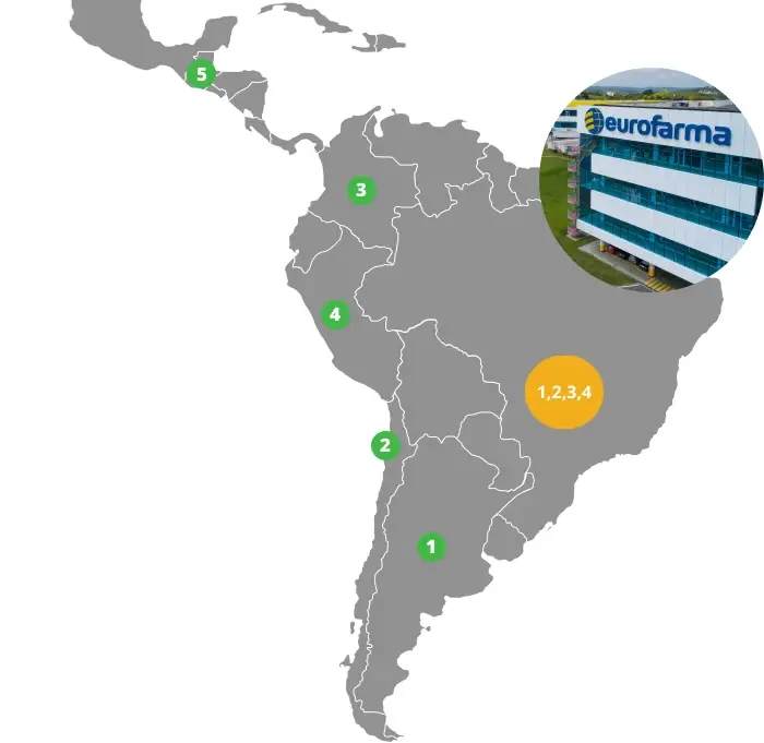 Ao fechar parceria com a Eurofarma, você garante a fabricação produtos de alta qualidade e em grande escala, com acesso a diversas plantas fabris pela América Latina. Toda a produção fica sob nossa responsabilidade.